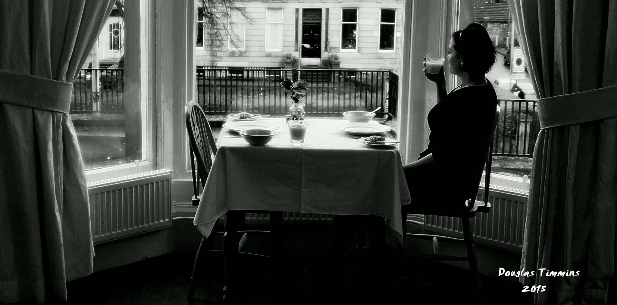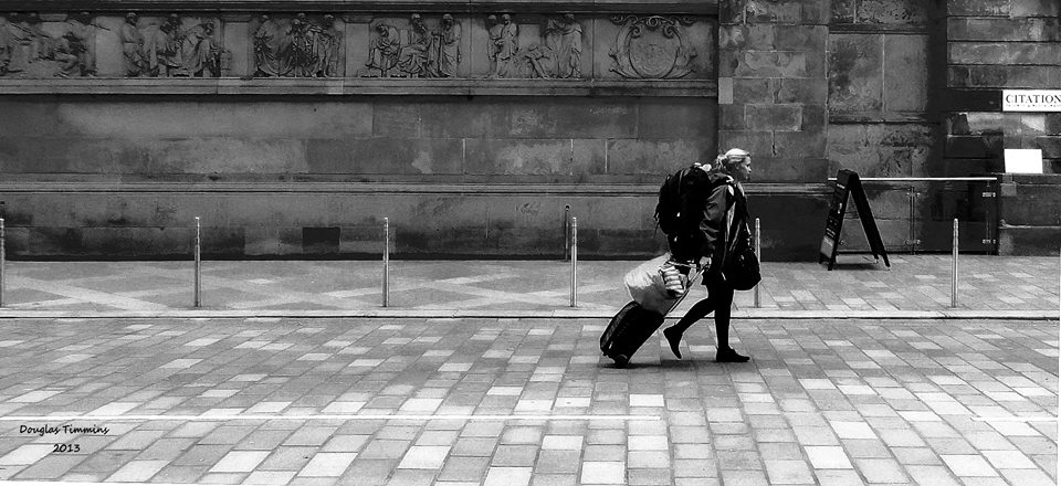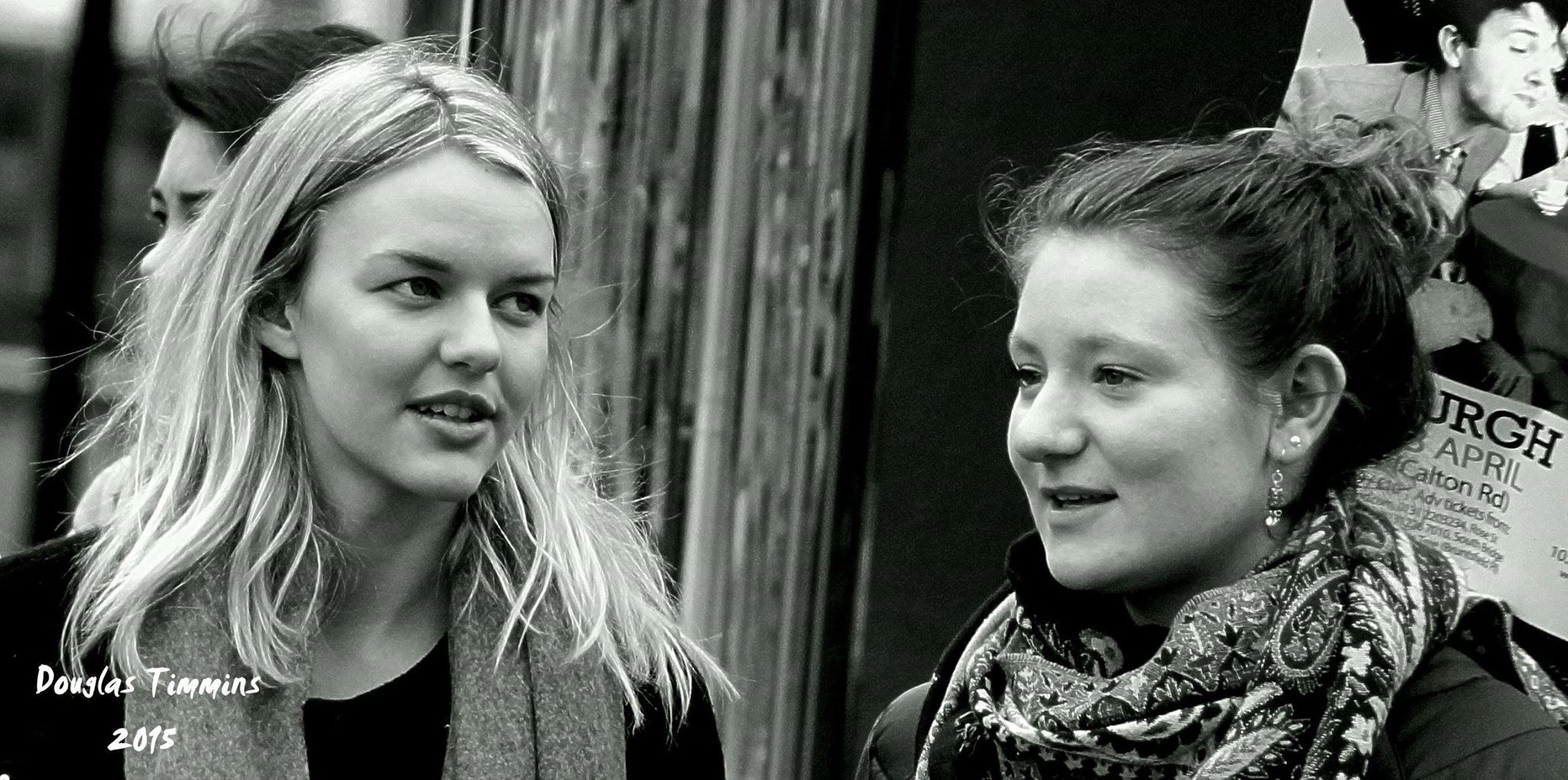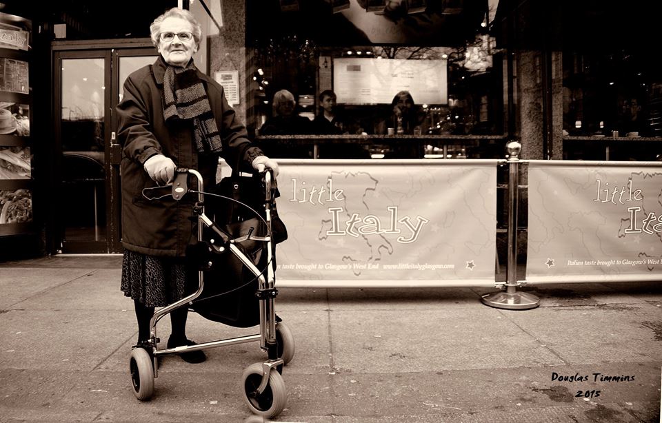 Doug, Dougie, Douglas Timmins est un personnage intrigant, intéressant, drôle et pertinent. Il est retraité et vie à Glasgow, un Écossais pur laine. Il est connu ici surtout pour son passe temps qu’il exécute avec brio, la photographie. Sa vie se déroule comme une pièce de théâtre sur Byers Road dans le West End jouant son propre rôle. C’est surtout là son lieu de prédilection et aussi à travers Glasgow qu’il prend ses plus beaux clichés. Ses sujets de choix sont des passants sur la rue, surtout des femmes je vous dirais, euh presque juste des femmes je confirme et des animaux surtout des chiens oui que des chiens. Il passe une partie de ses journées au pub Oran Mor et prend des clichés de ses amies, de vedettes de passage, des clientes avec qui il fait connaissance et du staff. Plusieurs de ses portraits de personnalités connues décorent les murs de l’établissement. Il a entre autre à son actifs de magnifiques clichés de personnalités connues tels ; (pour en nommer que quelques unes) Amy Winehouse, Paolo Nutini et plusieurs autres. Je suis une chanceuse qui deux de mes portraits signés Douglas mais ne sont pas accrochés sur aucun mur de célébrités. Non il n’est pas alcoolo, il ne boit pas, il a l’air sérieux, il est grand et imposant, cela tranche drôlement avec la légerté de son oeuve. Il y a même un court documentaire fait sur l’homme sur Youtube voici le lien très intéressant.