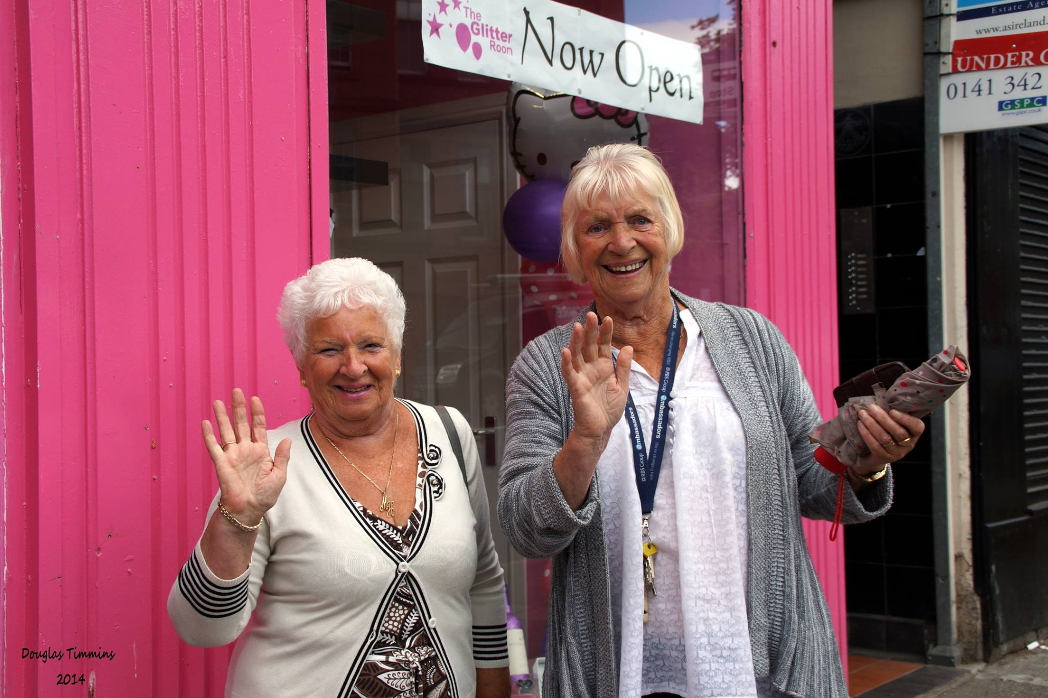 Good time Glasgow gals Marion and Violet are giving you all a wave. Pals for 60 years they only ever fall out over who is going to buy the next drink!